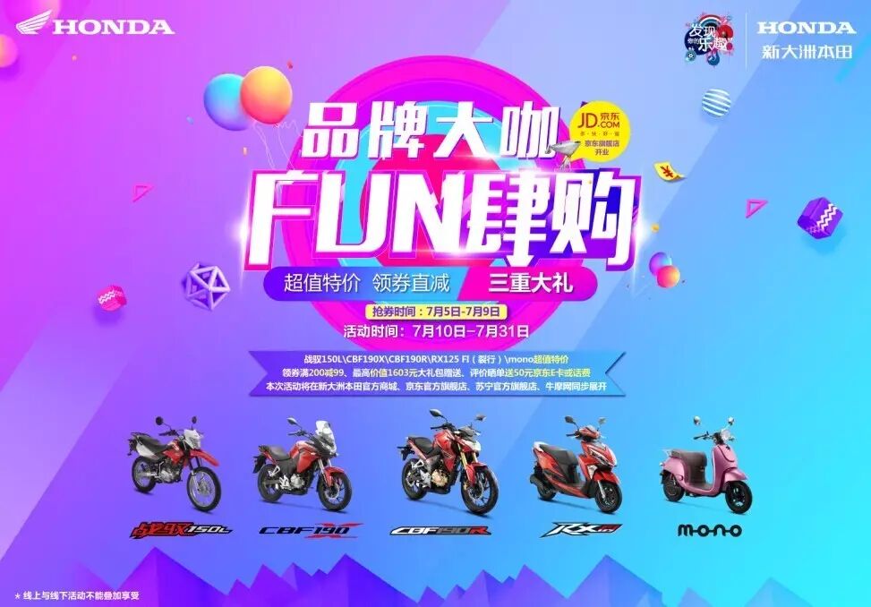 随着越来越多的成功,新大洲本田也将越来越多的车型投入到电子商务平台。在这个火红的7月,新大洲本田京东旗舰店将盛大开业。SDH梦之队也将重磅集结,全平台出击,为车迷奉献一场轰轰烈烈的抢7大战。